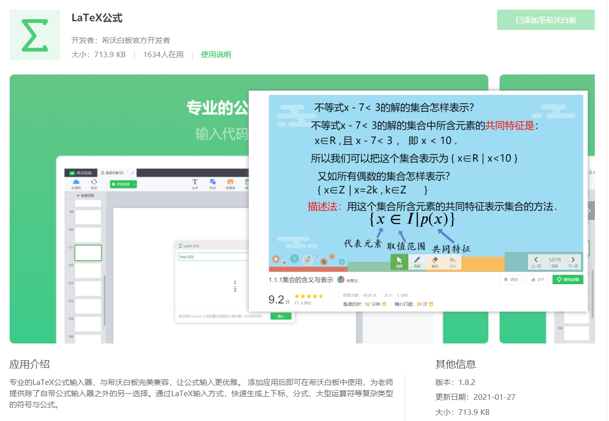 不仅是文科课件,理科课件同样很棒,而且希沃白板5支持LaTeX公式输入和显示