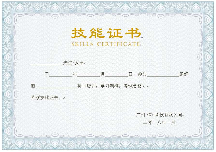技能证书效果图。