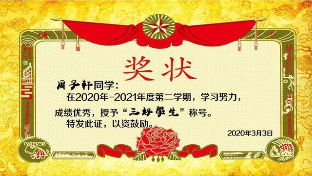 于是有些教师通过奖励的方式提高学生的学习网课的积极性。例如,制作电子奖状证书来调动学生的竞争意识,从而激发学习的积极性。
