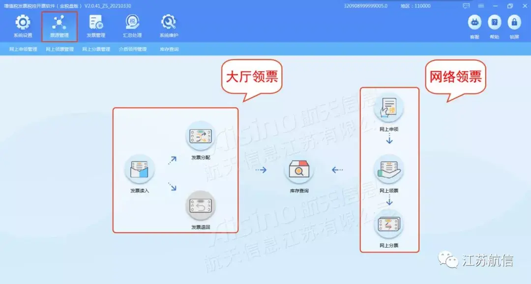 将纳税人通过大厅或者网络领取的发票读入库存。