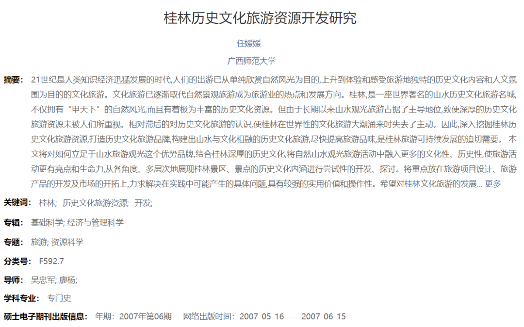 任媛媛.桂林历史文化旅游资源开发研究[D].南宁:广西师范大学,2007.三、普通图书