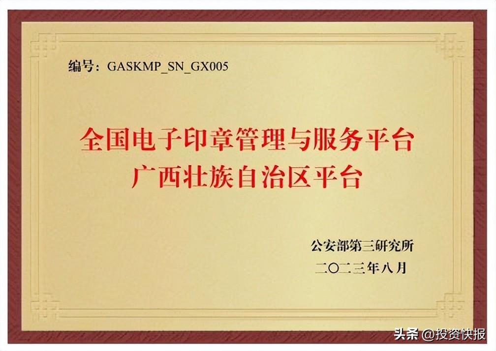 8 月 10 日,公安部第三研究所全国电子印章管理与服务平台广西壮族自治区平台正式成立,并在南宁举行“构建可信生态 赋能数字经济”公安部第三研究所全国电子印章管理与服务平台广西壮族自治区平台发布及授牌仪式。