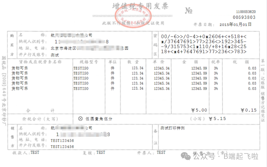 上述业务数据处理,最终形成如图所示的发票票面信息。