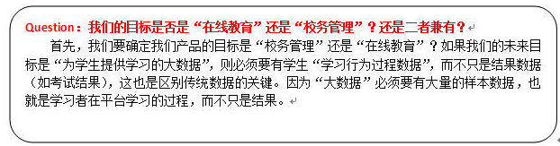 我们之前“校务管理”方向的用户是体制内的,“在线教育”方向的用户还不明确。