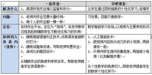 按我个人的理解,产品的目标可能是“既走互联网路线,也和体制内学校结合”,那目前有没有这样的产品在走同类路线?我们可以暂时作为竞争者。见下表中的两个产品: