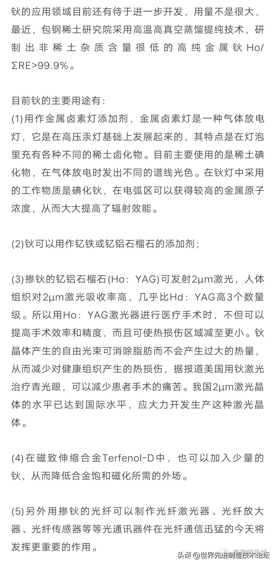 (2)钬可以用作钇铁或钇铝石榴石的添加剂;