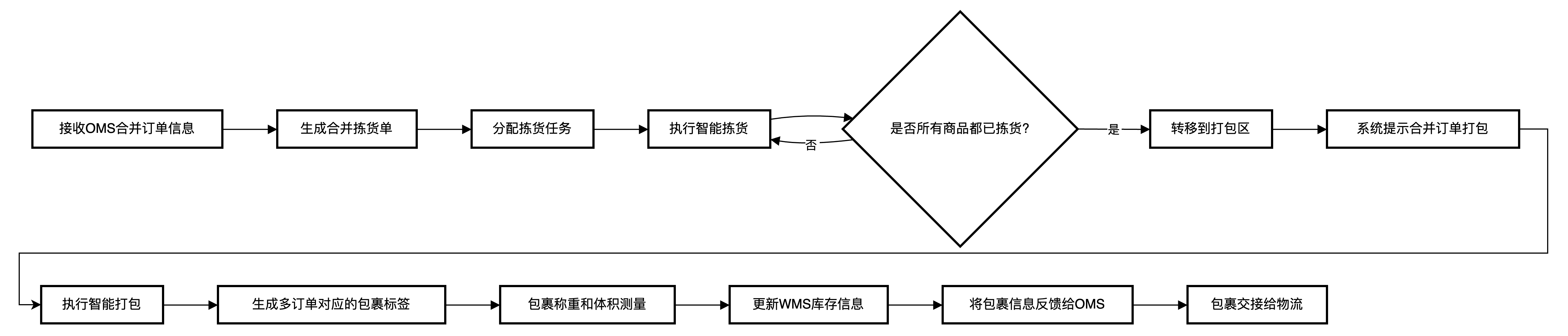 在仓库管理系统(WMS)中,合并发货的设计主要体现在拣货和打包流程上: