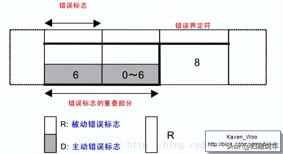 发送结节在(CRC界定符、ACK界定符、帧结束EOF)固定格式的位置检测到显性位时,将发生格式错误,并发送一个错误帧。