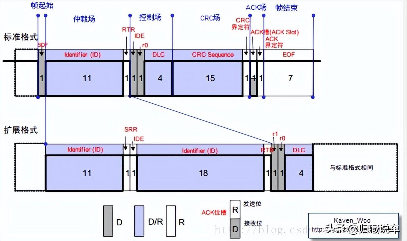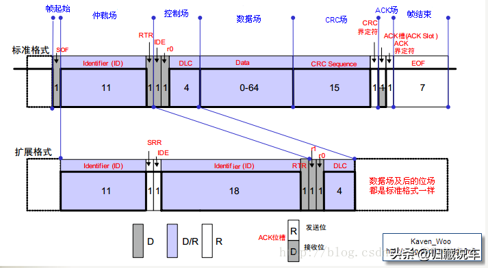 数据帧有标准格式和和远程格式,以下是其格式表示: