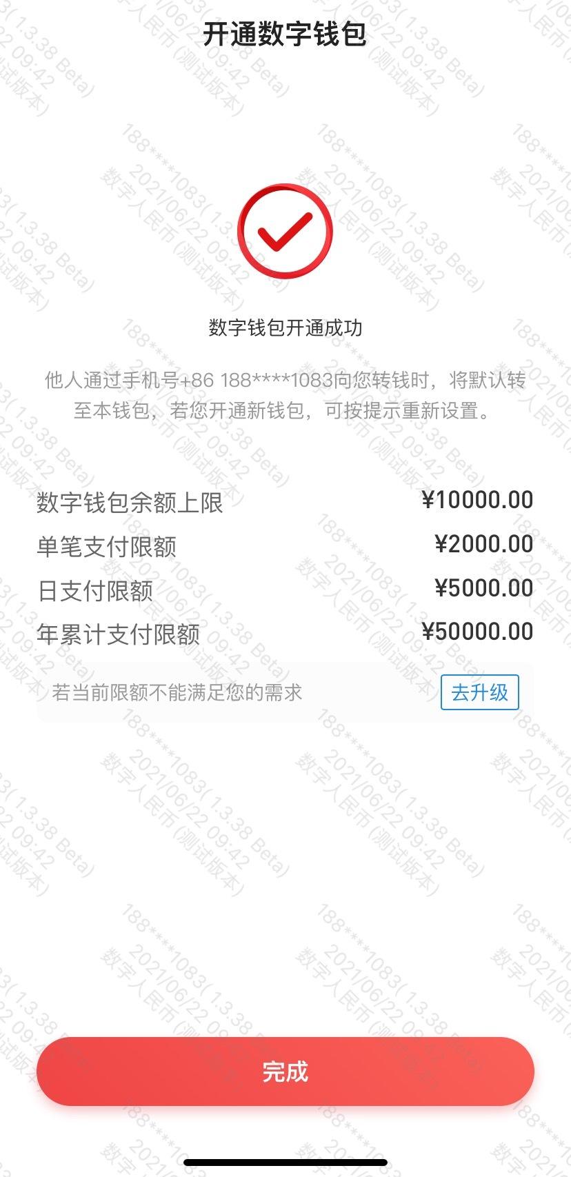 按照提示步骤,设置自己的“数字钱包”,其中要注意选择和自己相应的银行进行捆绑操作,并为自己的“数字钱包”设置名称。设置完毕后,“数字钱包”开通成功。根据提示,数字人民币单笔交易额的上限是2000人民币,当日支付的上限为5000人民币。