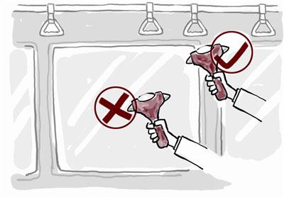 逃生锤使用最重要的一点是找准敲击玻璃的最佳位置。当遇到紧急情况需要敲碎玻璃逃生时,千万不要拿着逃生锤乱敲一通,这样反而敲不碎玻璃,耽误时间。应该找准玻璃的四个角,大约距离窗框5厘米左右,在这四个区域附近敲击能很快把玻璃敲碎。注意要先按着一个点敲击,等彻底把玻璃敲开了再敲击其它的点。或者敲碎一点后如果玻璃出现较大的洞,可以用脚把玻璃踹碎。另外在很多公共汽车玻璃上都贴有“紧急时敲碎安全玻璃”字样,用逃生锤敲击这个标示也能快速敲碎玻璃。