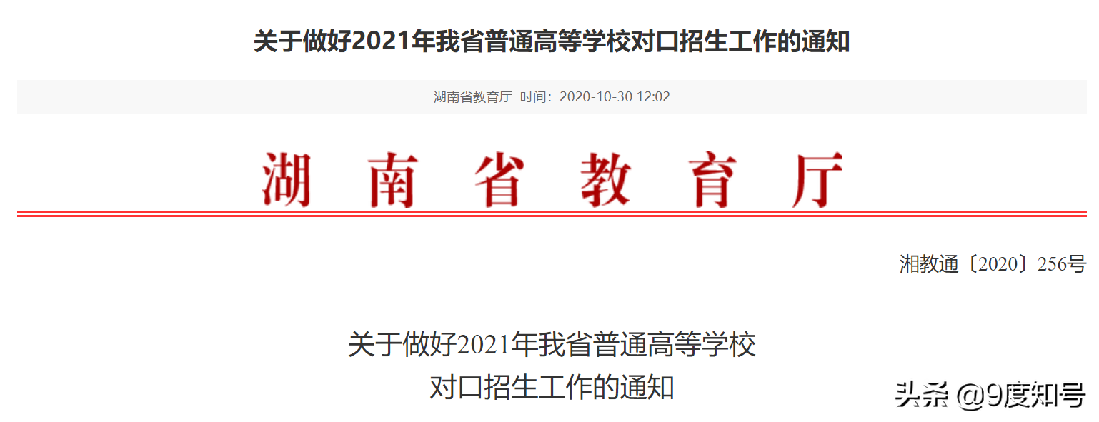 11月12日,湖南省教育厅下发《关于做好2022年我省普通高等学校对口招生工作的通知》(下称《通知》),公布明年考试相关工作安排。
