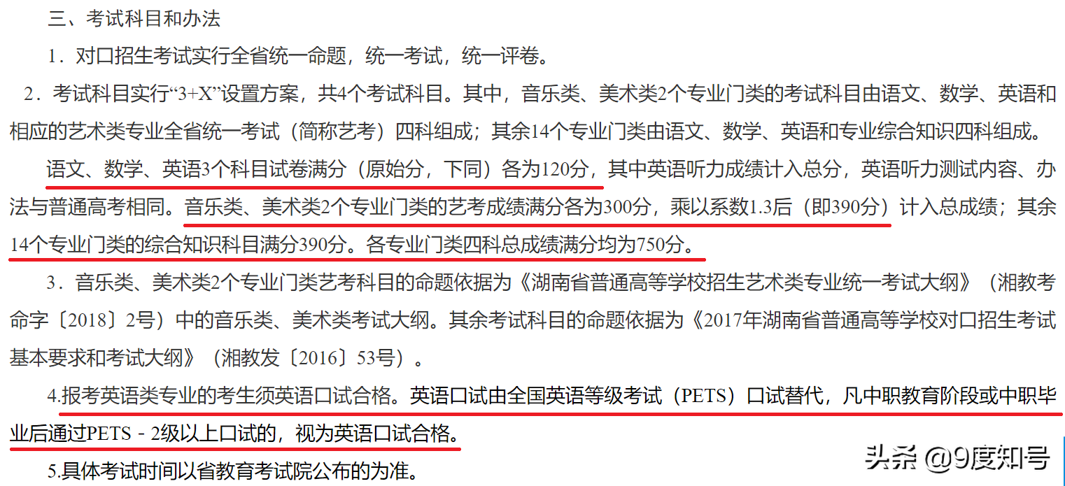 另外,音乐类、美术类2个专业门类艺考科目的命题依据为《湖南省普通高等学校招生艺术类专业统一考试术科考试大纲》中的音乐类、美术类考试大纲。其余考试科目的命题依据为《2022年湖南省普通高等学校对口招生考试基本要求和考试大纲》。报考英语类专业的考生须英语口试合格。英语口试由全国英语等级考试(PETS)口试替代,凡中职教育阶段或中职毕业后通过PETS-2级以上口试的,视为英语口试合格。