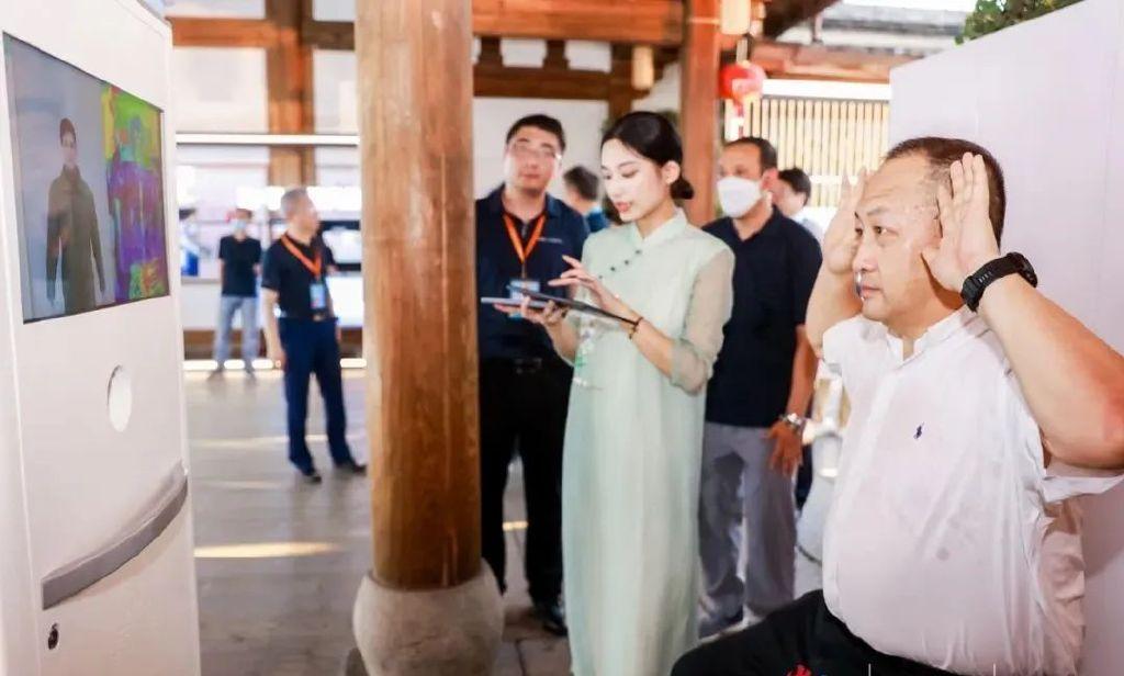 (参会领导体验鹰眼4号红外中医可视化智能检测机器人)