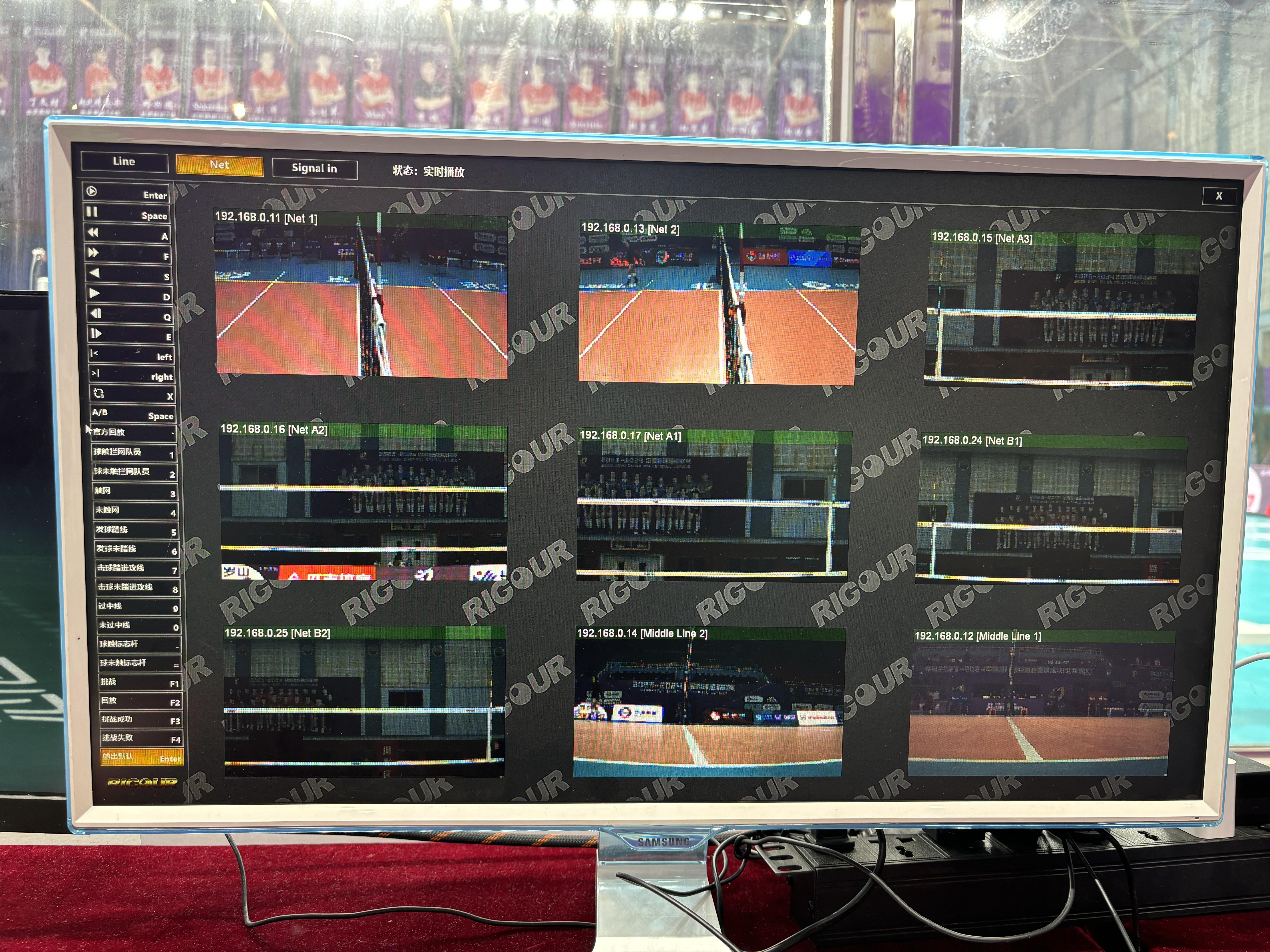 据杨靖仁介绍,17个高速摄像头采集的画面会在主控台的电脑上实时显示,不同摄像头采集的画面内容有所不同,有的摄像头会协助判定界内球还是界外球,有的摄像头可以同时为拦网触手、触网等挑战内容提供视频画面参考。