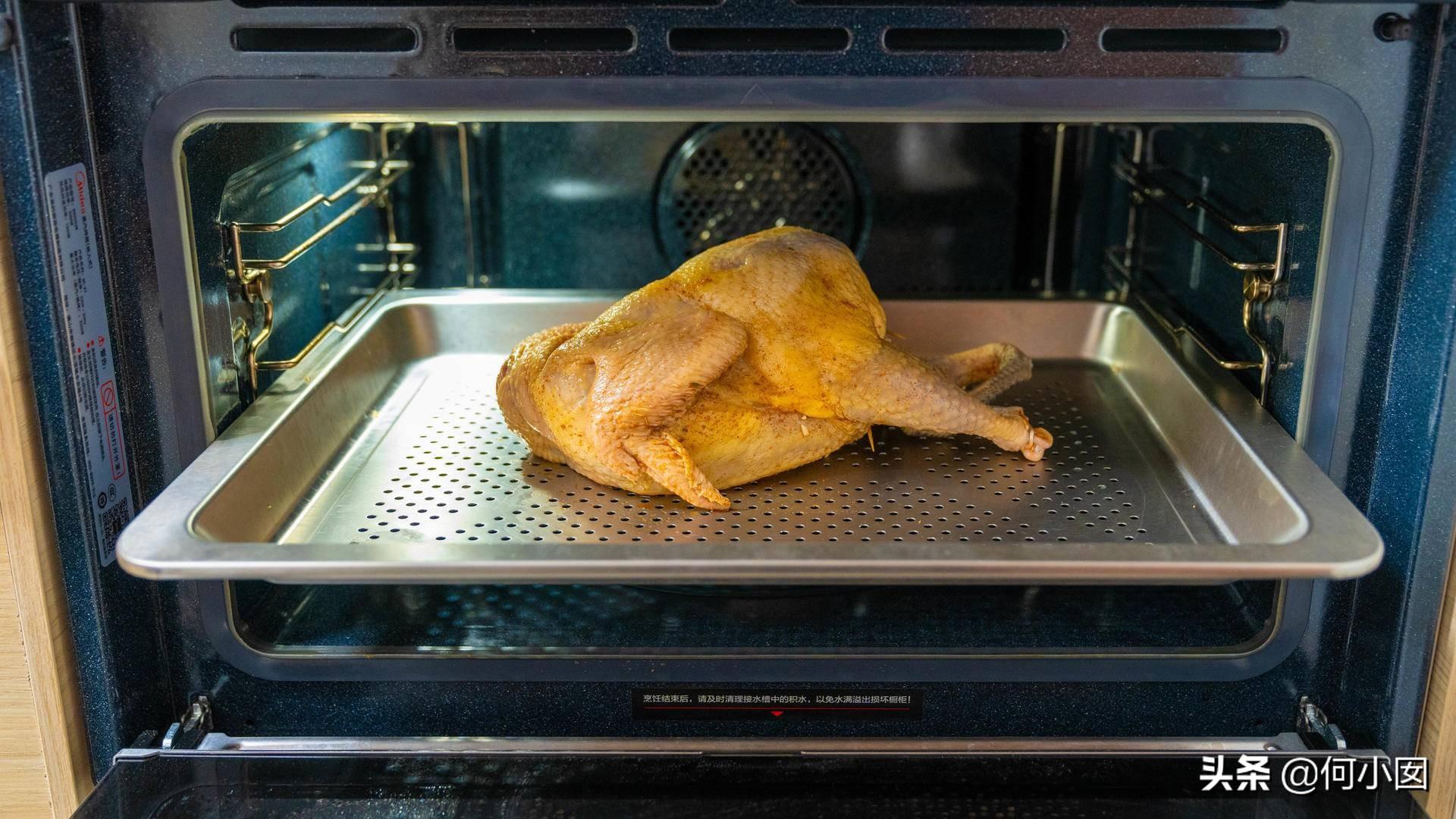 8、鸡最好是换烤盘,这样比较好清洁烤箱,我嫌麻烦没有换,鸡放入烤盘,美的BS5052W 嵌入式蒸烤箱一体机设置180度预热,烤20-40分钟,我设置的是30分钟,在20分钟的时候加盖锡纸