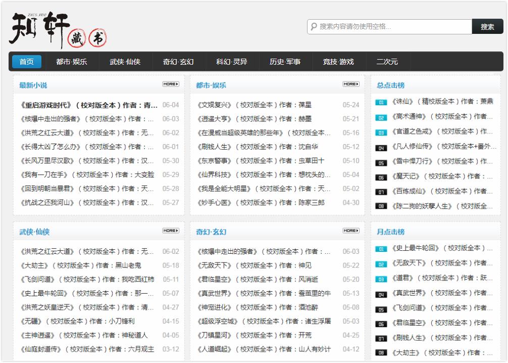 该网站也提供了海量的电子书资源,另外还作了详细的分类,主要的分类有都市娱乐、武侠仙侠、奇幻玄幻、科幻灵异、历史军事、竞技游戏以及二次元。值得一说的是,里面的电子书质量都非常高!