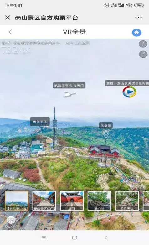以游客需求为第一信号,建设智慧泰山微信服务号,通过微信购票、电子导游、直播泰山、VR全景、泰山公告等主要功能,让游客充分体验到“智慧泰山”的便捷和魅力,真正实现“一部手机,游遍泰山”。