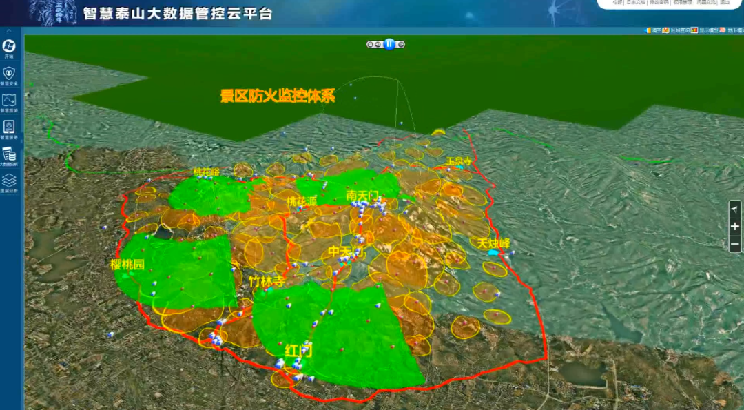 作为天字一号工程,森林防火是景区各项工作的重中之重,泰山景区从预防火灾、发现火灾、扑救火灾三个层面建设九大系统,全面提升科技防火能力建设。