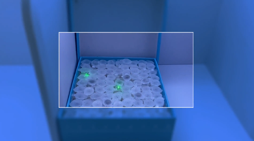在医疗、科研、生产等活动中,经常会有很多样品需要管理。超高频LED发光电子标签的应用,解决了样品的快速盘点、快速交接、快速定位并找到指定样品等问题。如试管样品的管理: