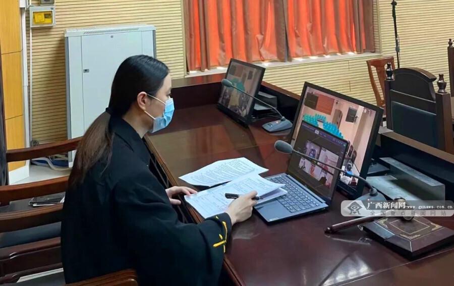 主审法官通过网络进行远程庭审。灵山法院供图