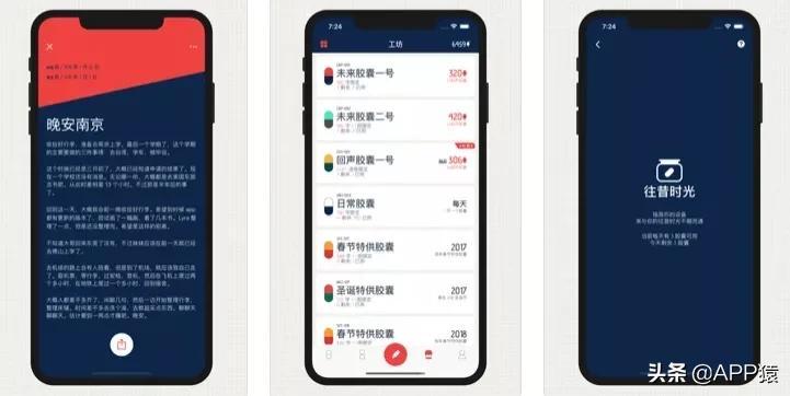 【时间胶囊】是一个在App Store高达4.9分的日记APP,它不仅可以记录每一天,还能够写信给未来的自己。整体设计风格简洁很文艺,用户每天可以写一个胶囊,并采用不同色彩的胶囊代表不同的心情,包括平静的一天、不错的一天、难过的一天,记录后这个颜色之后会出现在日历中,用户一眼就可以看到自己的记录的心情。