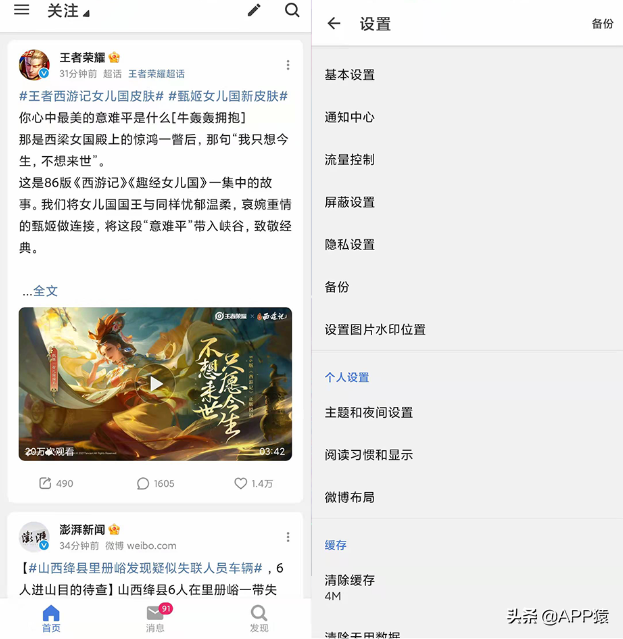 自从【Share微博】开发者停止更新后,好用的第三方微博APP基本就只剩下【See微博】这颗独苗了。为什么要用第三方的微博APP,还不是原生微博无论是普通版还是国际版,都内置太多广告。【See微博】轻量、简单、无广告,微博有的功能它基本都有,另外还支持一键下载原图、修改机型、悬浮视频、话题自动一键签到等黑科技,另外支持屏蔽词、各种好用的手势。