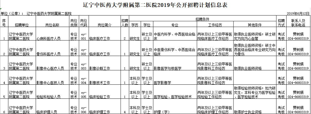 2019年辽宁中医药大学所属附属医院公开招聘人员