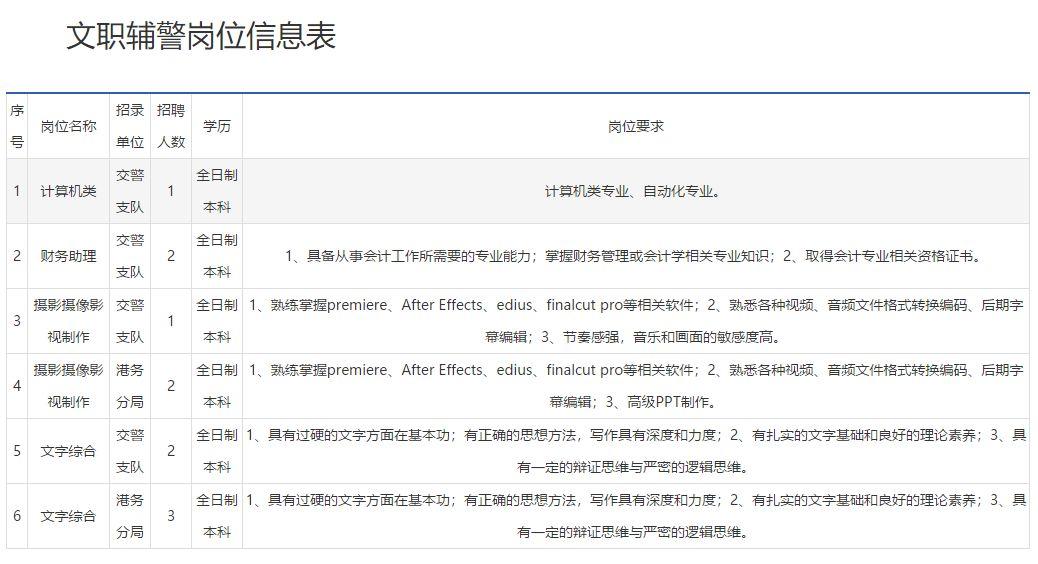 计划招考辅警90名,专业不限,主要从事警务辅助工作,职位信息如下: