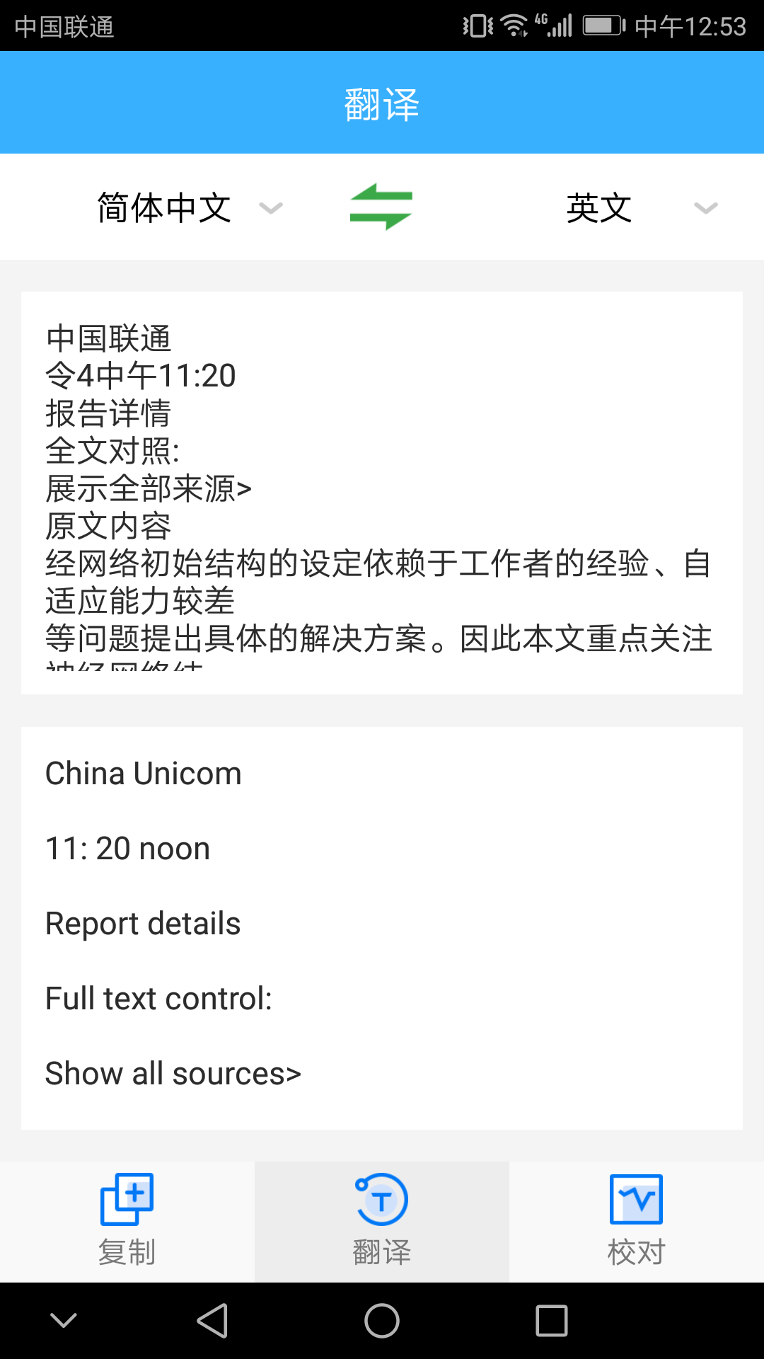 它还提供了翻译功能,只要点击底部的“翻译”按钮,选择好对应的翻译语言,便能快速得到你想要的译文了。