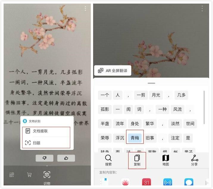 其实呀,“识物”功能不仅可以用来识别某件东西,它还可以用来提取文档,将纸质文件转为电子文件,这一功能对于学生、办公人士来说特别实用,用得好的话,甚至可以省下一大笔的钱呢。只要点击“识物”功能中的“文档提取”便可快速提取纸质文档上的文字了,非常方便,堪称扫描仪!