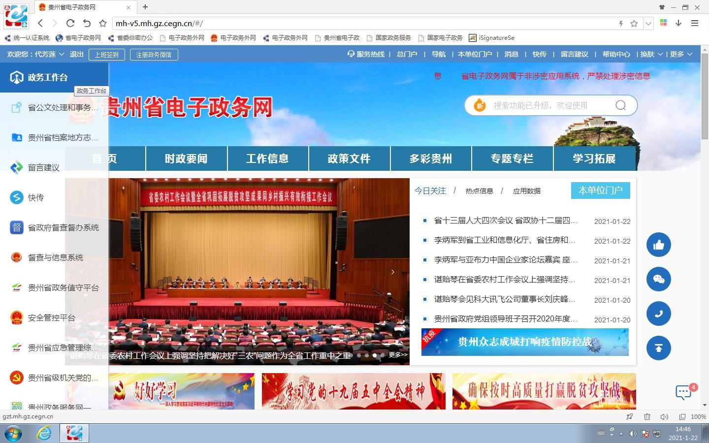 “贵州省电子政务网”是贵州省电子政务云的重要组成部分,是基于贵州省电子政务外网建设的集全省公务员工作、学习、管理为一体的行政办公总平台,为全省公务员提供互联互通、资源共享和联动办公服务。如果说“贵州省电子政务外网”是高速公路,“贵州省电子政务网”就是这条高速路上行驶的车辆。