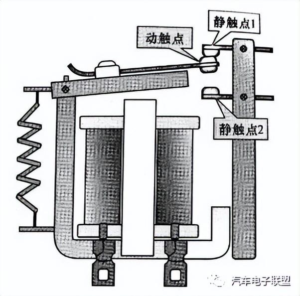 当线圈得电时,其动触点与静触点1立即断开并与静触点2闭合,切断静触点1控制线路,接触通静触点2的控制线路。