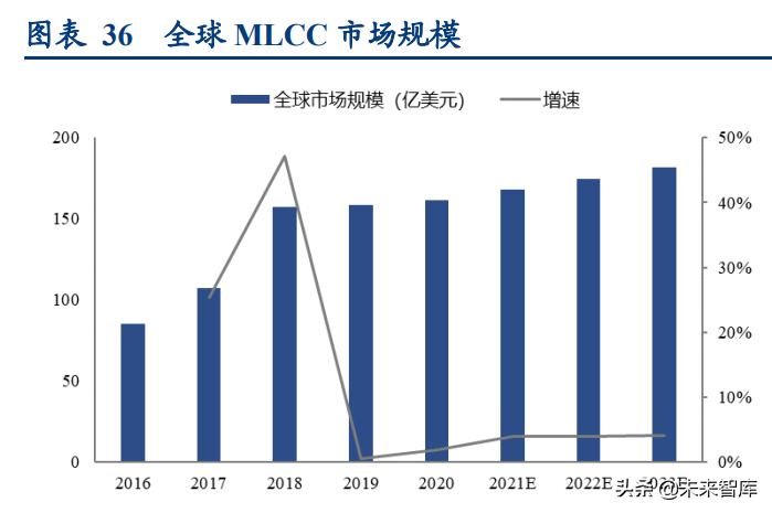 MLCC 层数一般为 300-1000 层,假设 MLCC 层数平均为 400 层,每层面积为 5 平 方毫米,基材全部为 PET,我们测算,2020 年全球 MLCC 用 PET 光学基膜需求量为 50.4 亿平方米,预计 2023 年增长至 58.9 亿平方米;2020 年中国大陆 MLCC 用 PET 光学基膜 需求量为 46 亿平方米,预计 2023 年增长至 53.4 亿平方米。转换为吨计量,PET 密度为 1395kg/m³,离型膜基材的厚度一般为 19-50μm,取常用规格 38μm,测算得出中国大 陆 2020-2023 年 MLCC 用 PET 基膜的市场规模为 24.4-28.3 亿元。