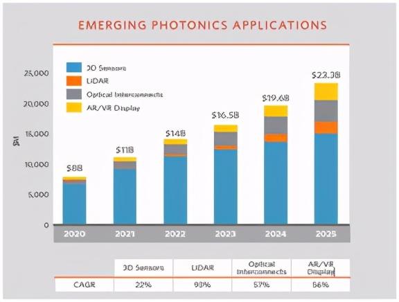 图 6. 新兴的光子应用将实现巨大增长(资料来源:Yole Développement 报告)