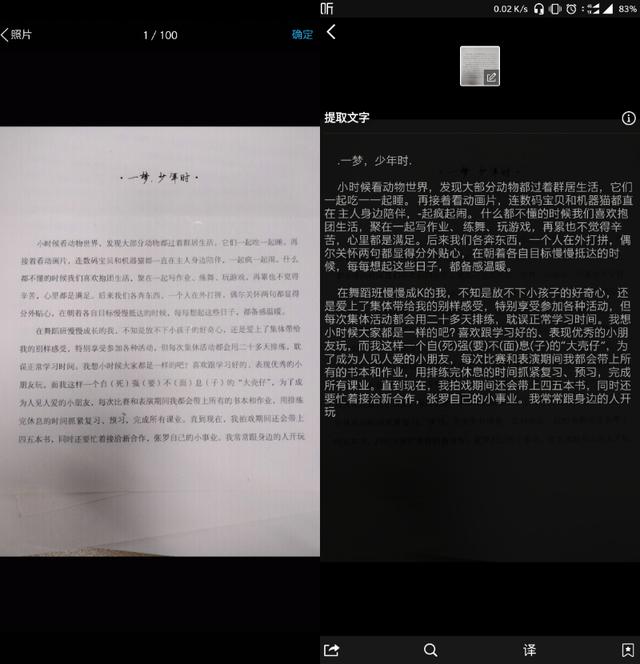 操作起来也不复杂,属于一看就会的,在相册中选择目标图片,然后它就会自动进行识别了,识别完成之后可以直接导成Word文档或进行翻译。