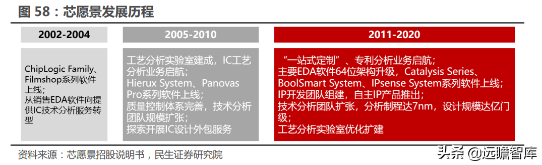 芯愿景是国内 EDA 行业的领军企业之一。公司是一家以 IC 分析、IC 设计和 EDA 软件为核心业务的高技术服务公司,是国内 EDA 行业的领军企业之一,主要经历了 3 个发展阶段。