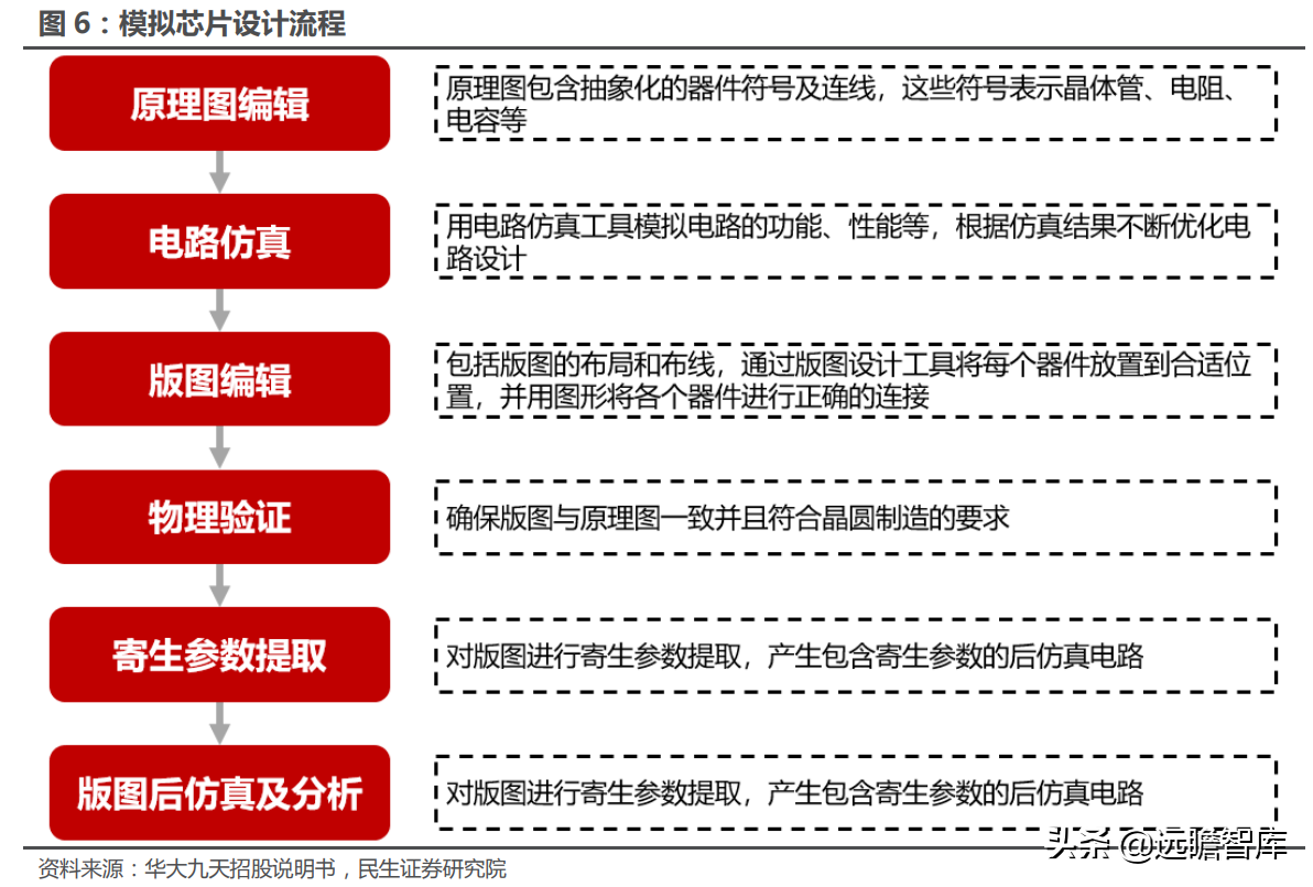 公司是我国唯一能够提供模拟电路设计全流程 EDA 工具系统的本土 EDA 企业。该 EDA 工 具系统包括原理图编辑工具、版图编辑工具、电路仿真工具、物理验证工具、寄生参数提取工具和可靠性分析工具等,为用户提供了从电路到版图、从设计到验证的一站式完整解决方案。目前大部分模拟芯片产品仍在使用 28nm 及以上的成熟工艺制程,从工艺支持角度来看公司既有模拟电路设计及验证工具已可以满足大部分模拟设计客户的制程需要。