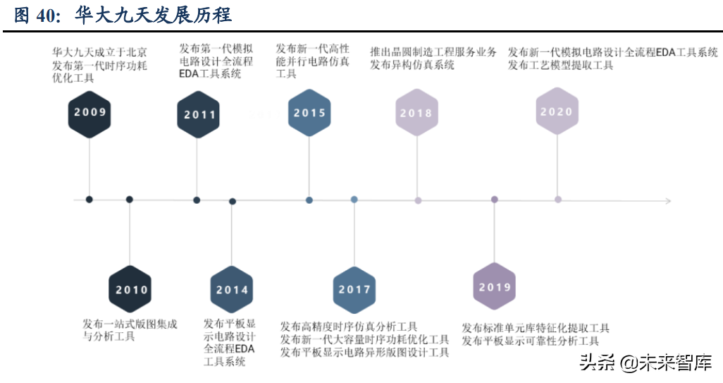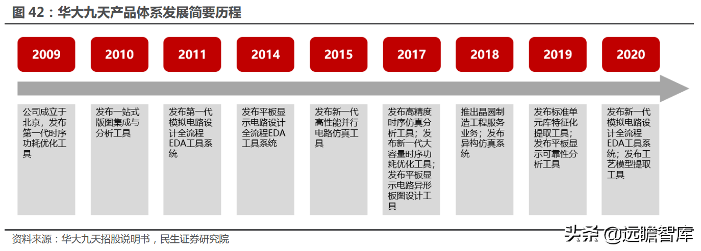 (3)EDA 软件领域: 将 EDA 软件需求定位于 IC 分析服务和设计服务领域,逐步形成六大软件产品线、38 个软件产品。