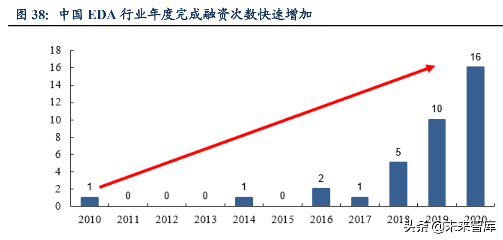 国产 EDA 历经三十余年艰难发展,迎来政策和资本支持。EDA 的国产之路起于 20 世纪 80 年代,20 世纪 90 年代初,中国历史上第一款具有自主知识产权的 EDA 工具“熊 猫”诞生,并获得多个国际大奖。但随后国外 EDA 厂商进入中国,在“造不如买”思 潮下,国产 EDA 产业陷入了十几年的沉寂。直到 2008 年国家“核高基”项目将 EDA 列 入其中,国产 EDA 产业才重新焕发生机。同时,中兴、华为事件使人们意识到关键基 础技术的重要性,资本市场也开始关注 EDA 行业。根据芯思想研究院数据,2020 年 EDA 行业融资次数已经达到 16 次,远超 2010 年的 1 次。