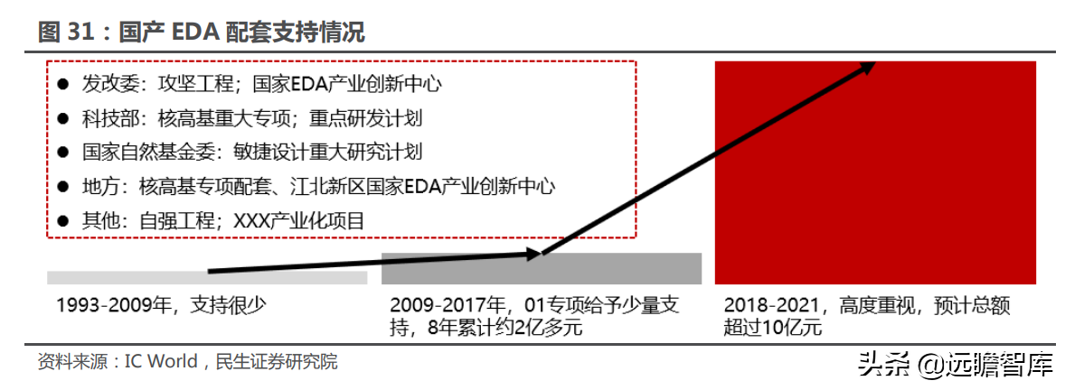 国家已经开始重视 EDA 产业,政府和民间均在加大投资,国家发改委、工信部、科技部均对 EDA 产业的创新和发展做出了重点支持,上海、南京、深圳等地方政府均成立了配套的 EDA 创新中心及相关的产业化项目。