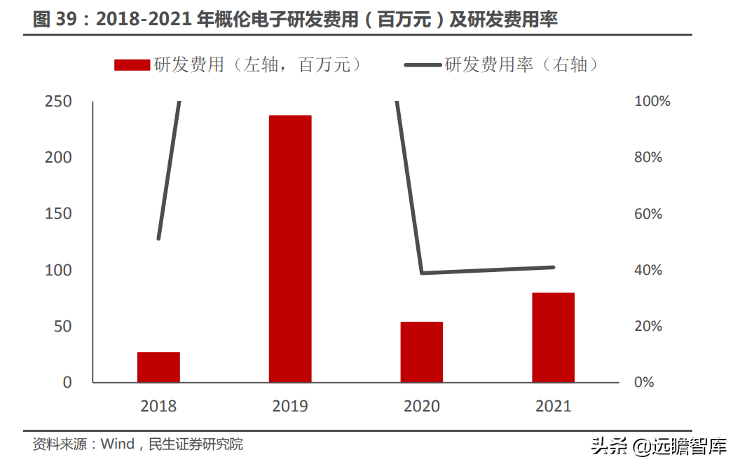 公司重视研发投入,持续对核心技术进行研发。 2018-2022年,公司研发费用分别为0.27、 2.37、0.54、0.79 亿元,研发费用率分别为 51.15%、361.92%、38.91%、40.99%,始终维持高研发费用率。