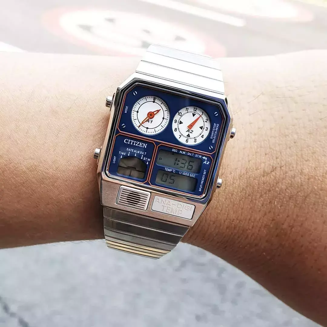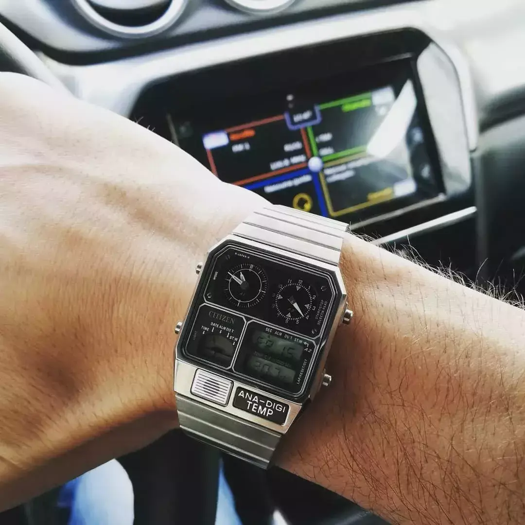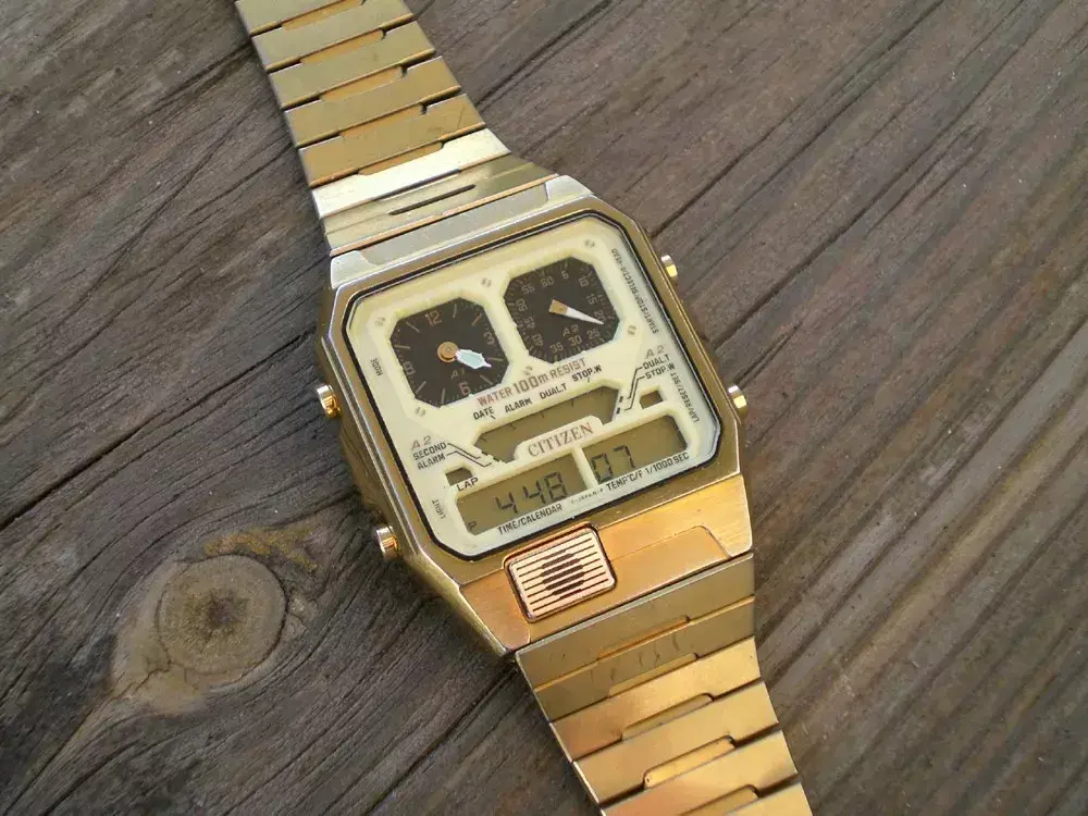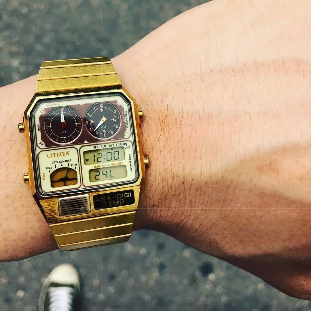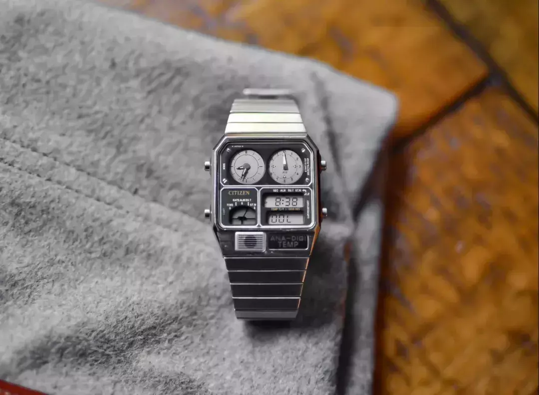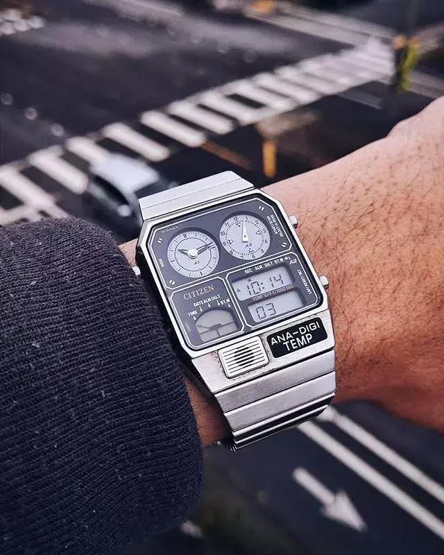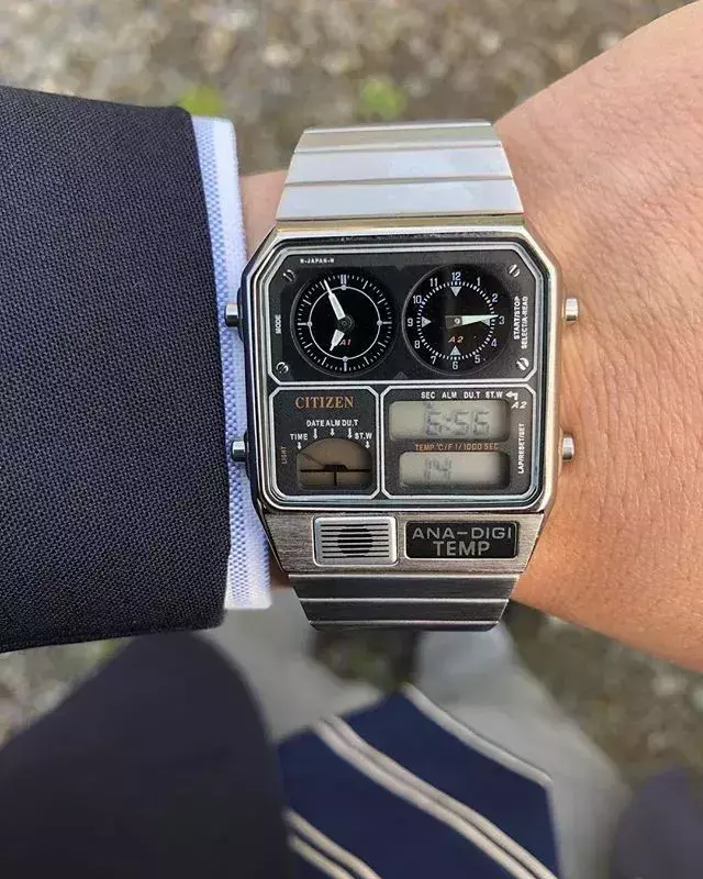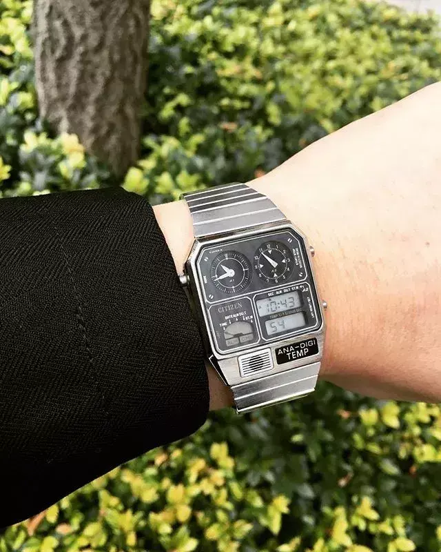 不过,不怎么令人产生兴趣的西铁城也是有过经典之作的,那就是把石英跟电子结合起来的 ANA-DIGI TEMP 腕表。