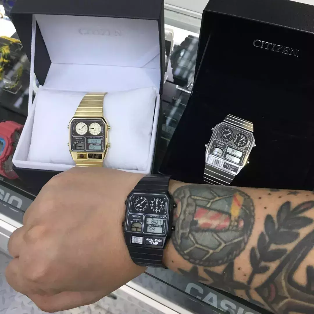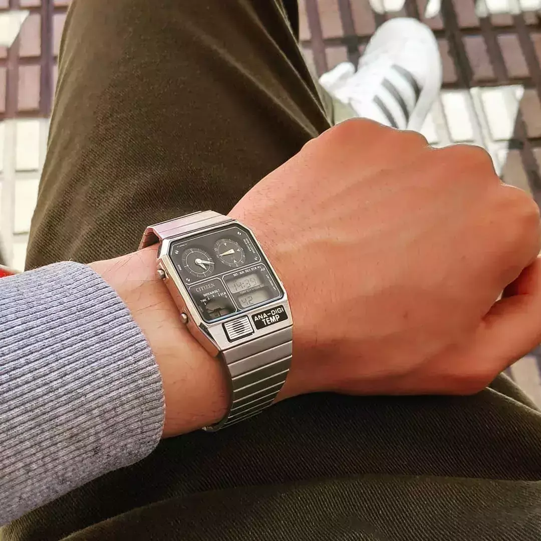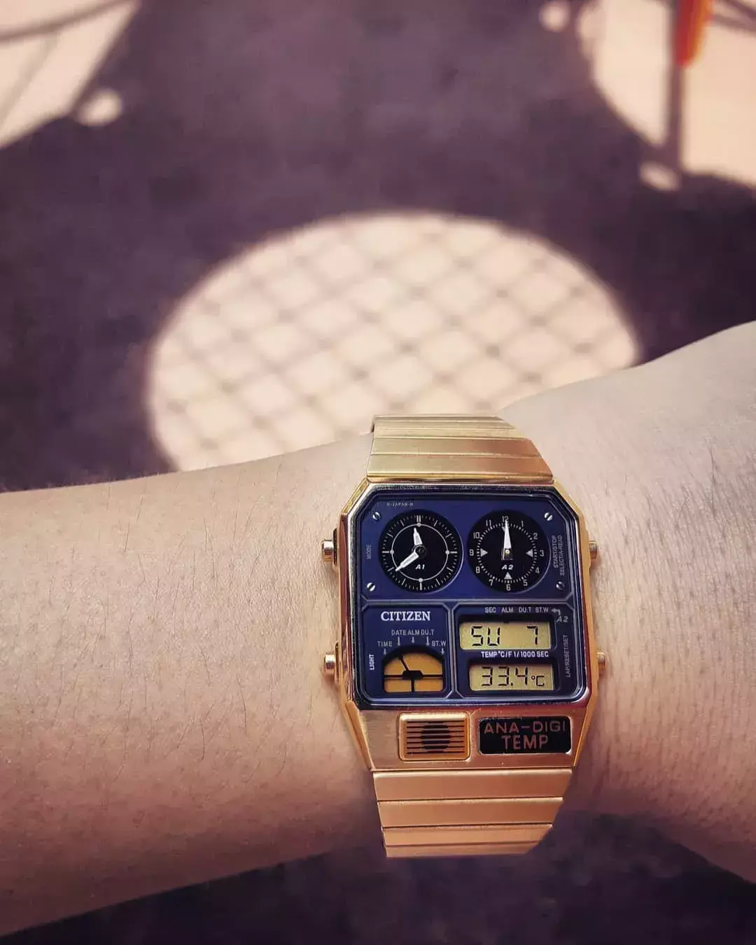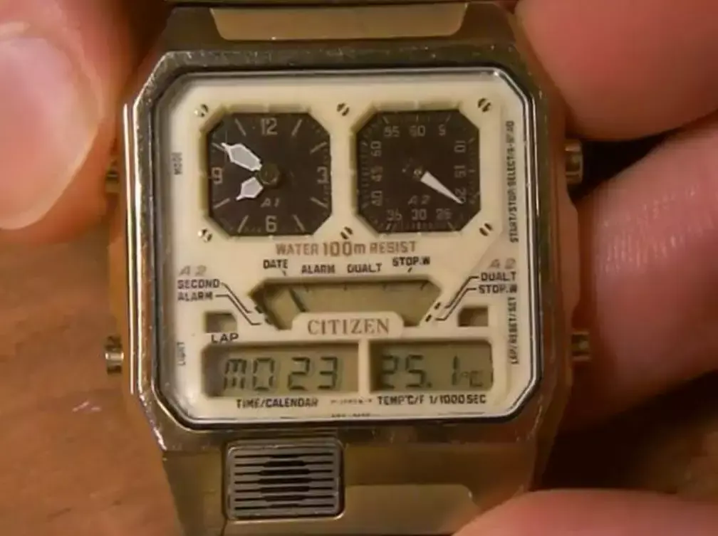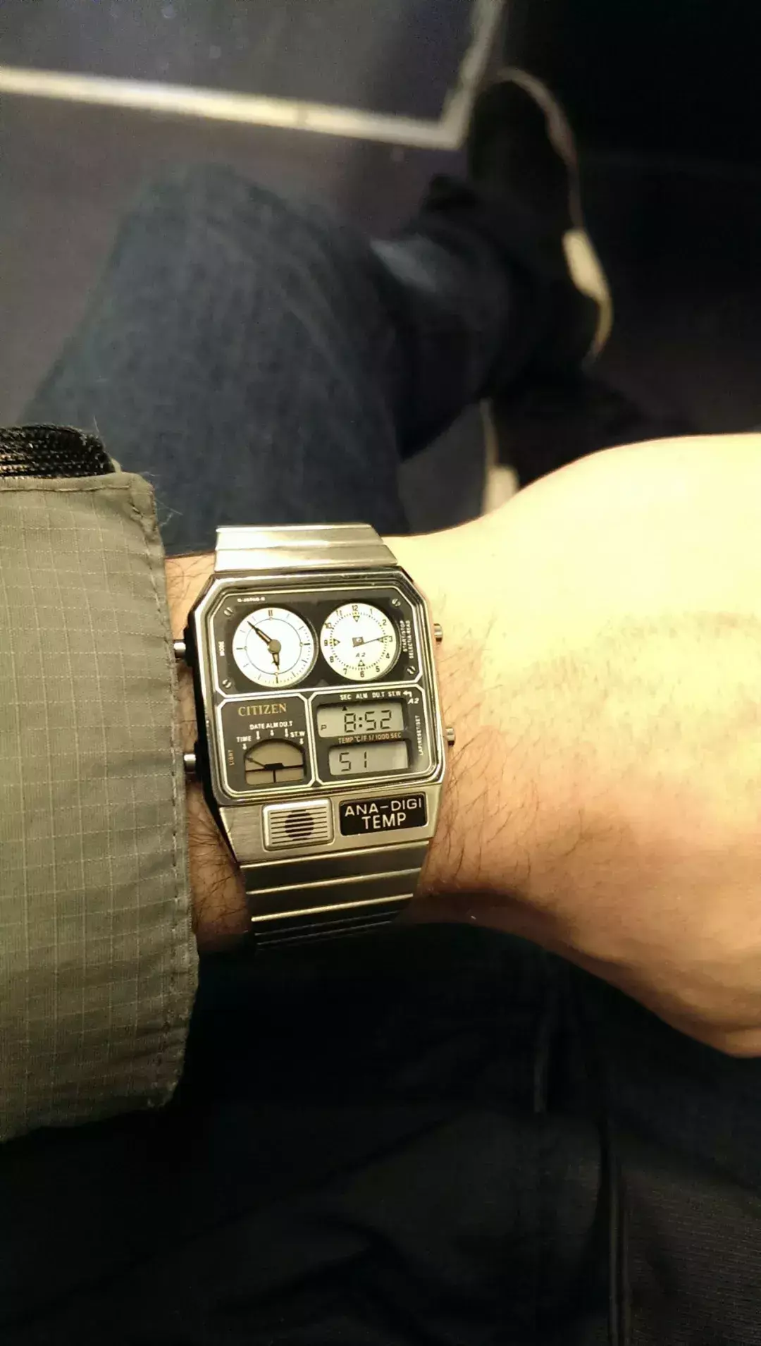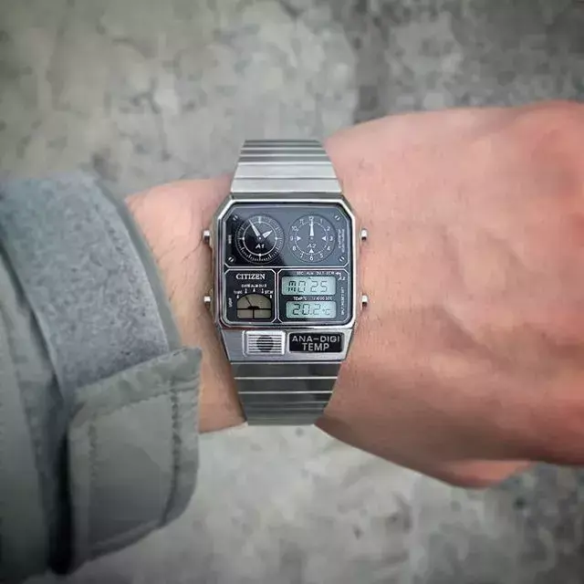 不过,不怎么令人产生兴趣的西铁城也是有过经典之作的,那就是把石英跟电子结合起来的 ANA-DIGI TEMP 腕表。
