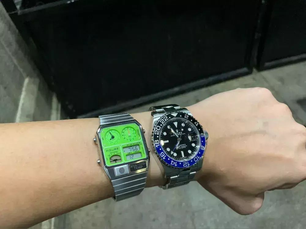 不过非常有意思的是,在国内外许多腕表论坛上,ANA-DIGI TEMP 并不会像 G-SHOCK那样招致众多歧视,不少平时戴惯了 Rolex、Omega······ 看似唯有奢华级腕表才能匹配得上的成功人士,倒是会对“不搭调”的它钟爱有加。