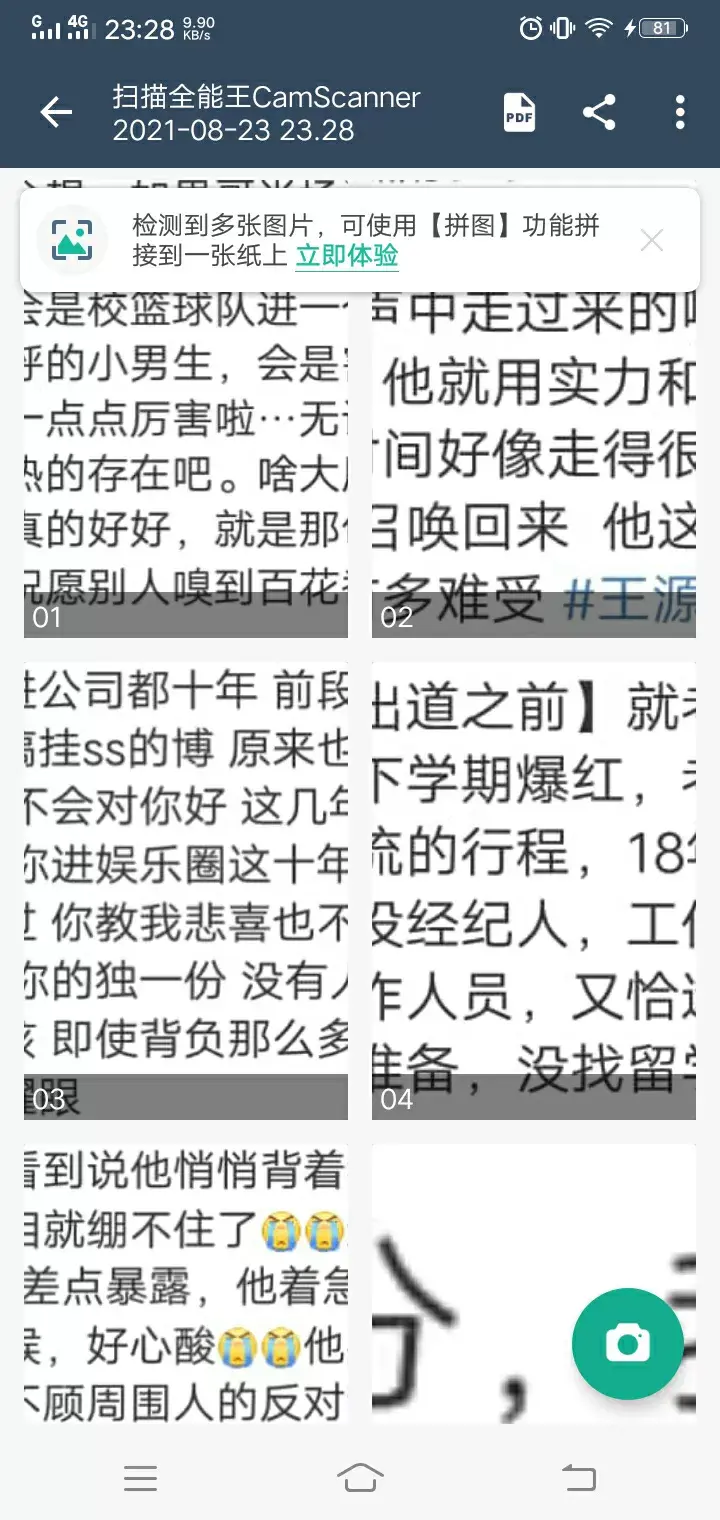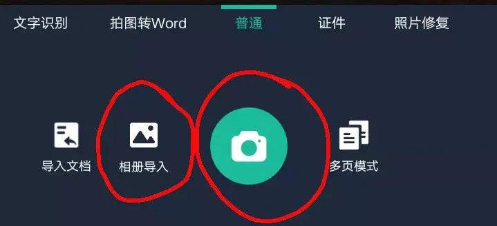 点击刚开始的相机图标后,选择从相册导入(这里把自己需要扫描的东西提前拍好,这里可以多选照片,一次操作,比较方便,要不一张一张来太慢了)