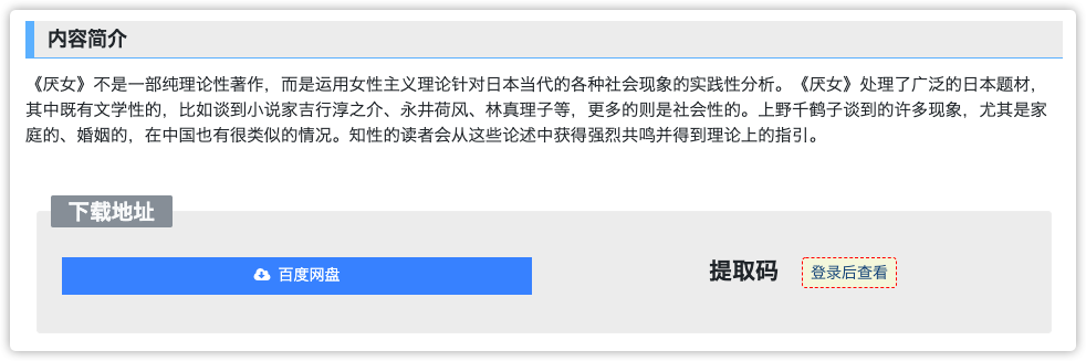书籍下载不需要任何费用,只要注册成为网站的用户即可,书籍存储的方式也是百度网盘,登陆后即可直接查看提取码下载收藏。