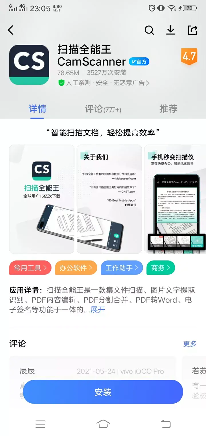 1.下载:应用商店扫描全能王,记得有后缀英文字母,不要下错了。