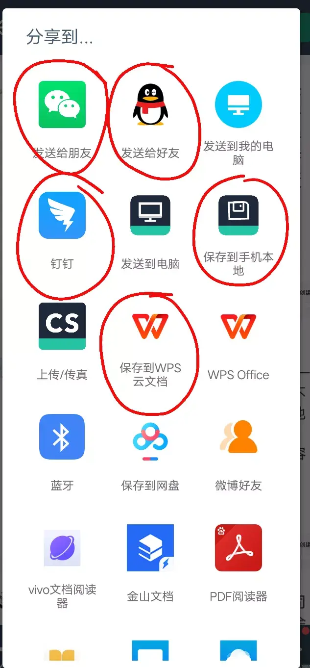 点击分享,如图所示框住的为常用分享位置,推荐QQ,微信,保存到本地你可能找不到文件在哪,还得费一番功夫。