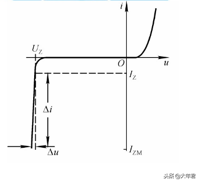 ③动态电阻Rz: 稳压管在反向击穿的曲线工作时,电压变化量△Uz与电流变化量△I之比称为动态电阻,动态电阻越小说明稳压性能越好;